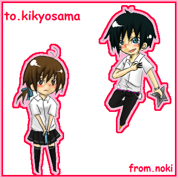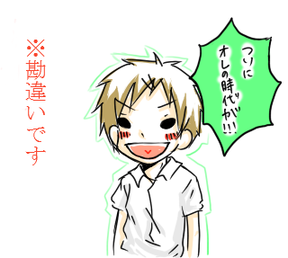 蒼さま、こんにちはでぇぇぇす。毎日のようにストーカーしてます(問 題 発 言)駄絵リクエストひっそりこっそりうけとりました。私なんかのあれでよければ、大いに喜びながら田中かきます。というか、田中にもったいない御言葉ありがとうございまぁぁす!ちょ、田中、お前!と戸惑っています。あんな扱いで申し訳ない限りです。本当に……これからはもうちょっと優しくしてやりたいと思います。はい。田中ごときにありがとうございましたぁぁぁ!