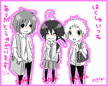 左右はオリキャラのあの人たちです。最近ほんとうチビ絵ばっかり描きすぎですね。更新しろ(正論)いや、明日くらいには更新します、はい。でも今ちび絵描きたくてたまらんシンドローム。このキャラと!なんてリクエストがあったら(ry)