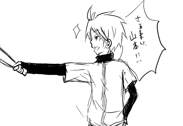 氷帝ジャージの夢主。最近の絵はあれですね、やる気の感じられない絵ばかりで申し訳ない。ただでさえ駄絵をさらしてるんだから、もうちょっと気合をいれろ、と。誰か、リクエストくれないかな……いや、すみません、調子乗りました。むしろ駄絵はかざるなって話ですよね…!分かってる!